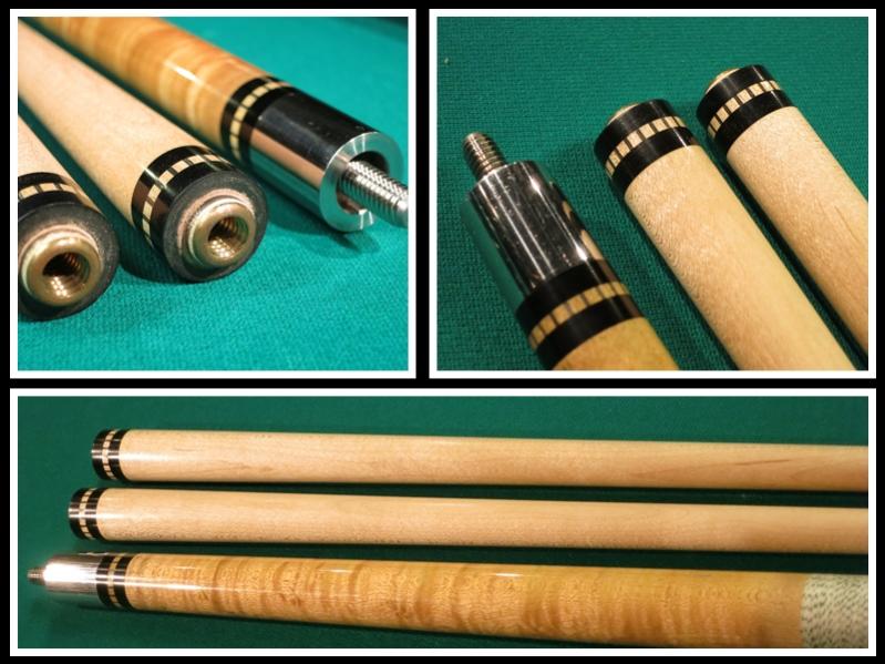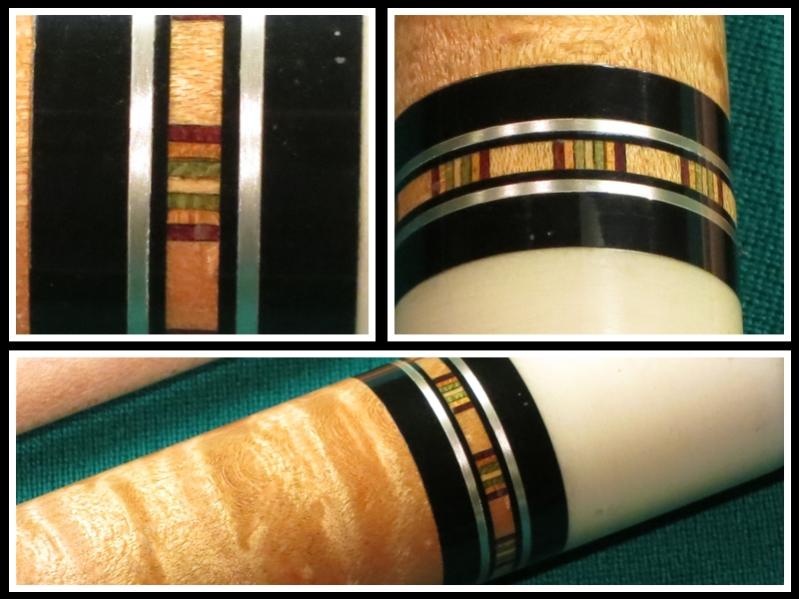 Here is an early Tad I believe from the first catalog. It's a merry widow with an ebony butt sleeve with those ring designs characteristic of Tad cues. I believe this rare beauty to be in original condition with two shafts. Enjoy the pics...