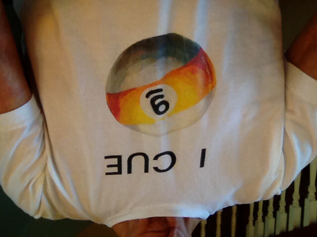 In that case, can you show me at least what are you dressing when you playing in the APA League or on when you participating at a big Pool Open or other big Event? Don't worry; this will be my last try to ask you for some pictures of your outfits!