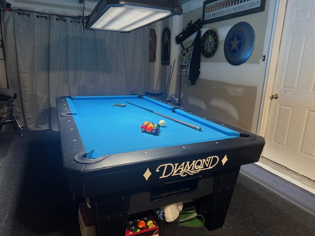 Place Amos & Andy game board at the head end of the table and rack the 15 numbered balls, in a pyramid, on the "spot" at the other end of the table. (As for rotation pool)