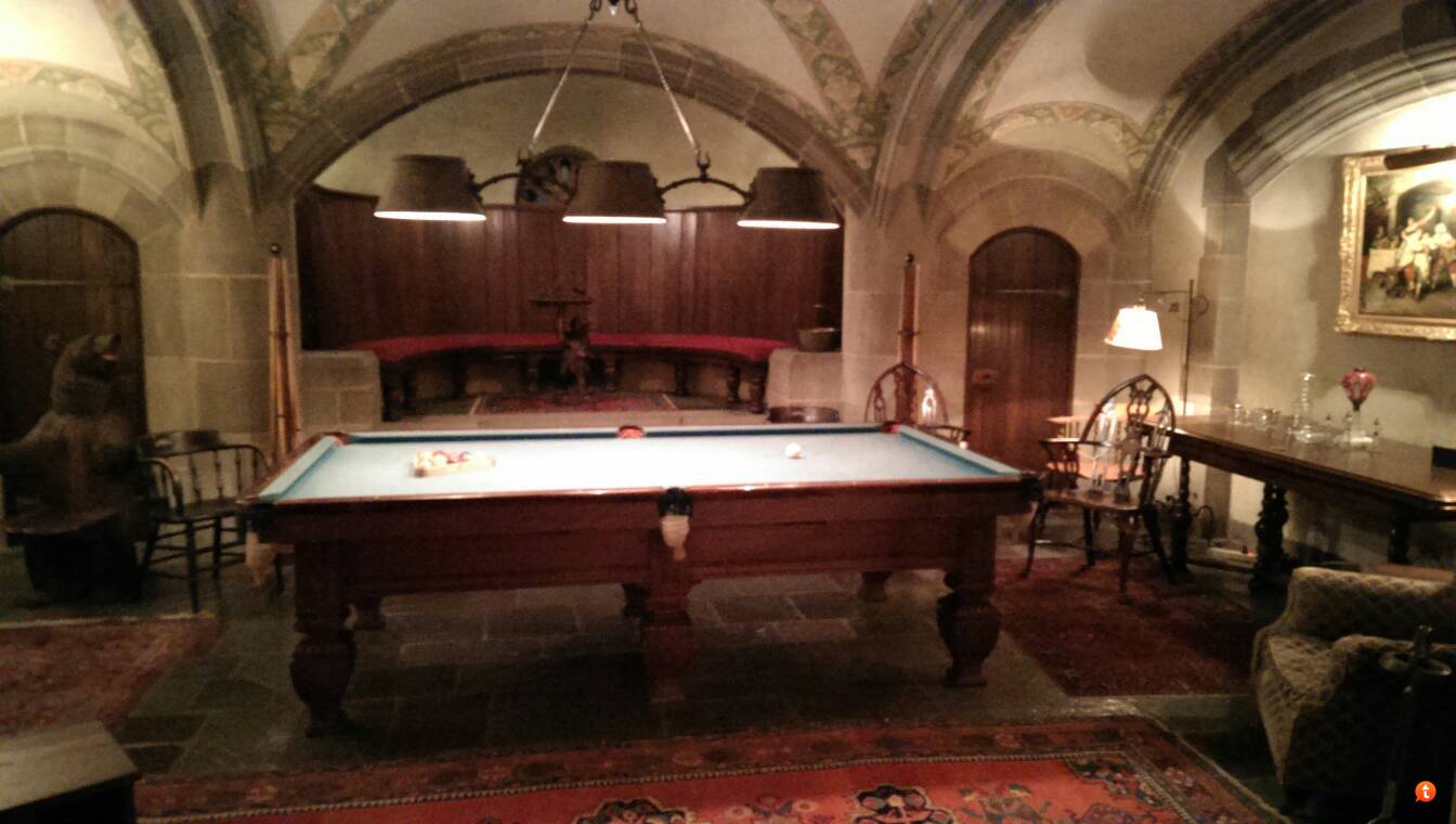 Beautiful table and cues, I'd be afraid of a ball flying off the table and smashing into those cues from an errant jump/break shot though.