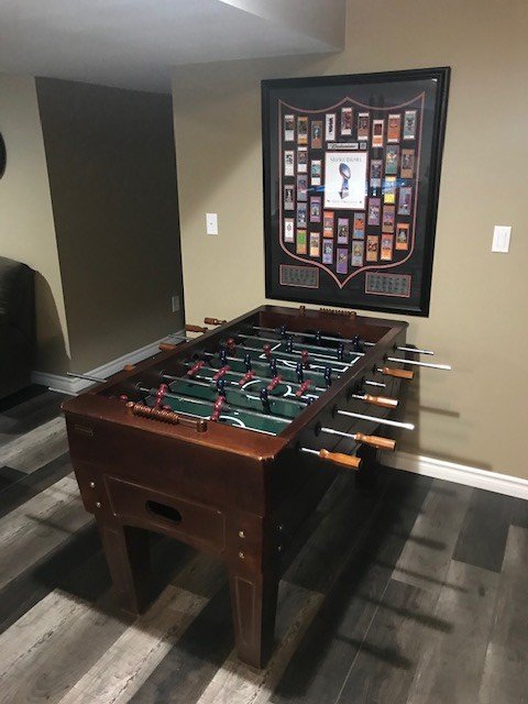 Bought our house summer 2020. Unfinished basement. Not quite done yet, but happy with my room so far. Need to cover those posts, put a cue rack "door" over the electric panel, get all my pictures and memorabilia up, and thinking I'm going to try my hand and designing and building a wall to wall back bar for my burgeoning whiskey collection. Anyway - a here are a few pics (put the Littman light in a few months ago - LOVE it. Works great and opens up the room like you wouldn't believe)