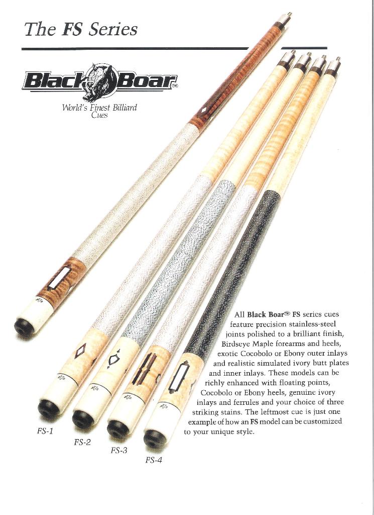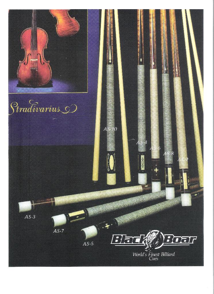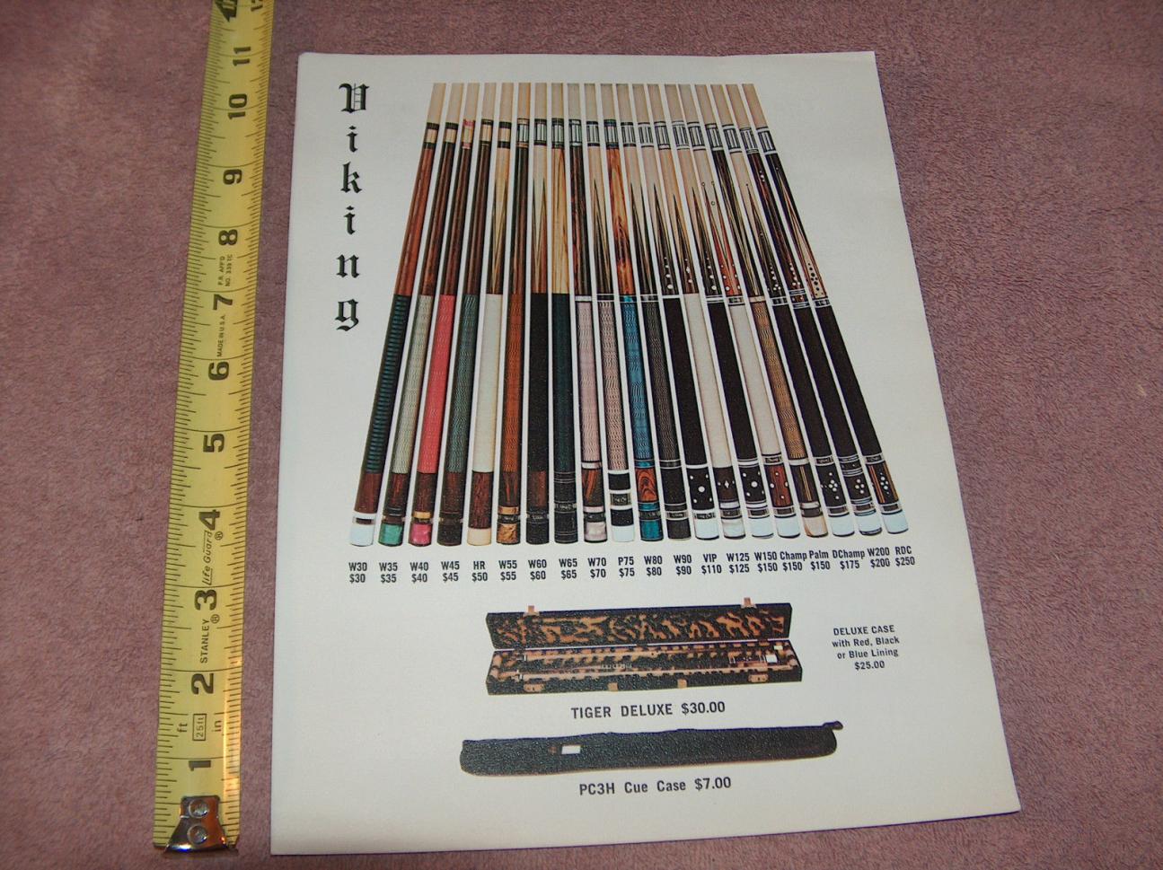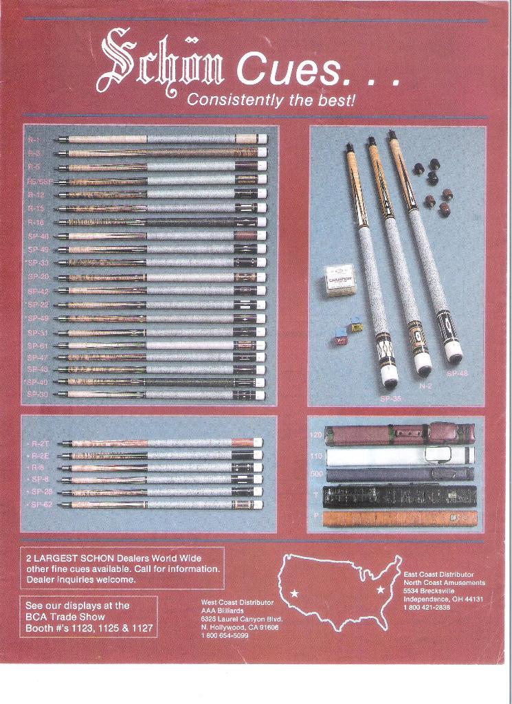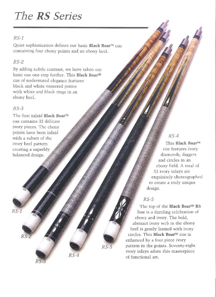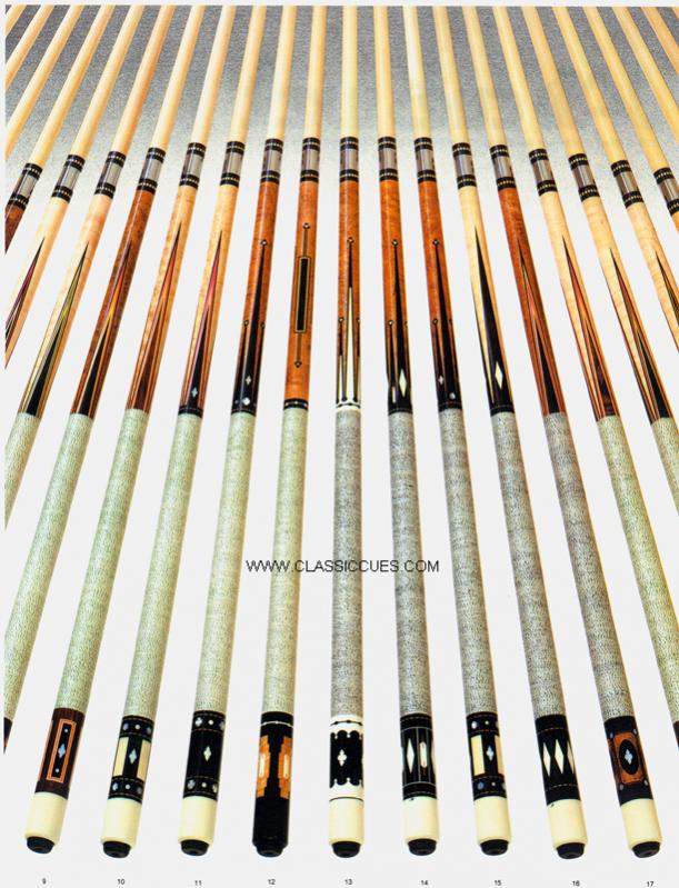 Over the years I have purchased or downloaded old brochures from custom cue makers and production cues from the 60's, 70's and 80's. I'll post as many as I can, I also have Schon's first catalog and a Barry Szamboti catalog in envelopes which I'll try to find and take pics of.