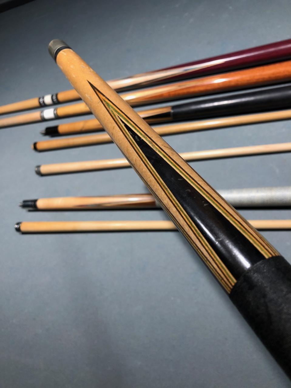 A few from ~1965 - ~1973. The cues witih gold wraps are original and unrestored.