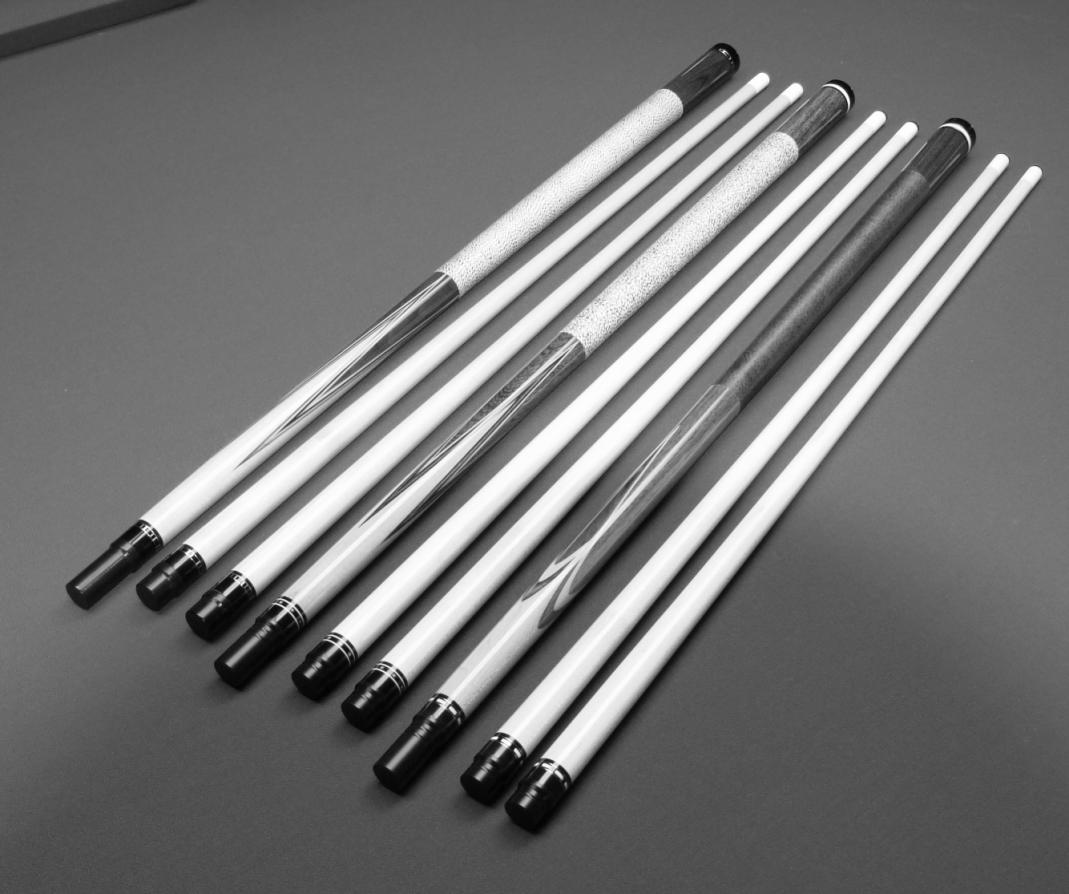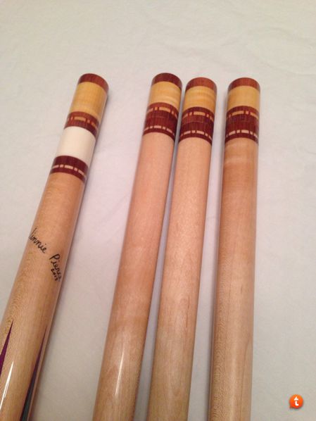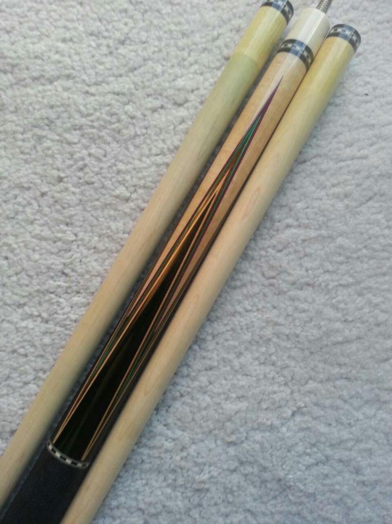 PFD STUDIO Ebony titlist Hoppe 26 1/2 conversion:thumbup:. All whites are ivory and the wedge is MOP. That wedge is not flat like old school cue, it's rounded. Paul did a great job on this cue.
