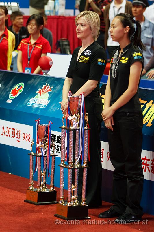 Her knowledge of the game is well advanced for a player her age, and I suspect she has been at it for more than ten years already. I see a fluidity in her stroke that only comes after hitting millions of balls. I have learned that none other then Wu Cha Ching has spent time tutoring her in China and it shows. She plays more like a 27 year old who has been competing a long time. I did see one or two spots where she may have overlooked a shot on a safety option, but that's about the only hole I saw in her game. These little nuances she will pick up quickly I'm sure. She shared in an interview that she was inspired watching Allison play when she was 4 or 5. I have a feeling, like other great Chinese athletes, she became dedicated to pool at a very young age. I suspect this is her full time job and has been for a long time.