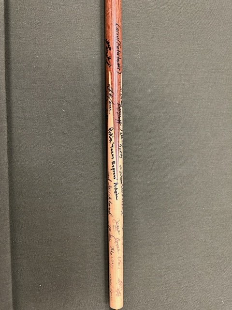 Can anyone help me figure out the names that were autographed on one of my mom's cues. She passed in 1998. The only clue I have is that it was signed in 1996 thanks to CJ Wiley dating it. Some of them I can tell what it says, some I can only get some of the letters, and some have nicknames but didn't put their last name. Pictures attached. Thank you in advance for your help.