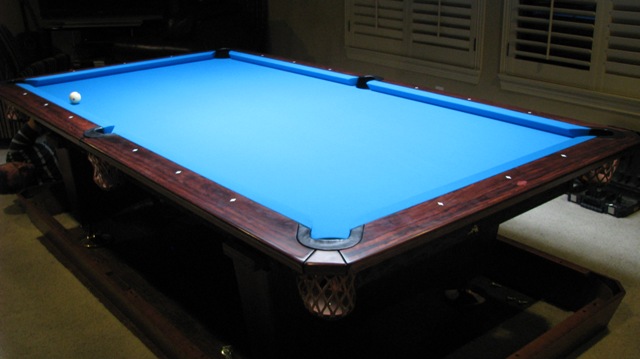 I just want to say I bought the Simonis DVD's that RKC put together. There are no real good mechanics in my area that I know of so I figured I'd try to recover my table myself. The videos were great and my table turned out better than I could have hoped for. It turned out beautiful, I am so happy with it. It looks great with the Simonis 860 Tournament Blue that I put on it. No shadows under the rails at all!! I will admit there is a few minor shadows around the side pockets on the bed cloth but I figure for my first recover it turned out awesome. Thanks for the great instruction Glen!!