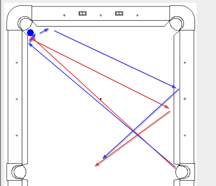 The cueball is being shot from around the opposite side corner pocket. Very important. The hanger isn’t in the middle of the pocket but slightly hanging more towards the far rail.