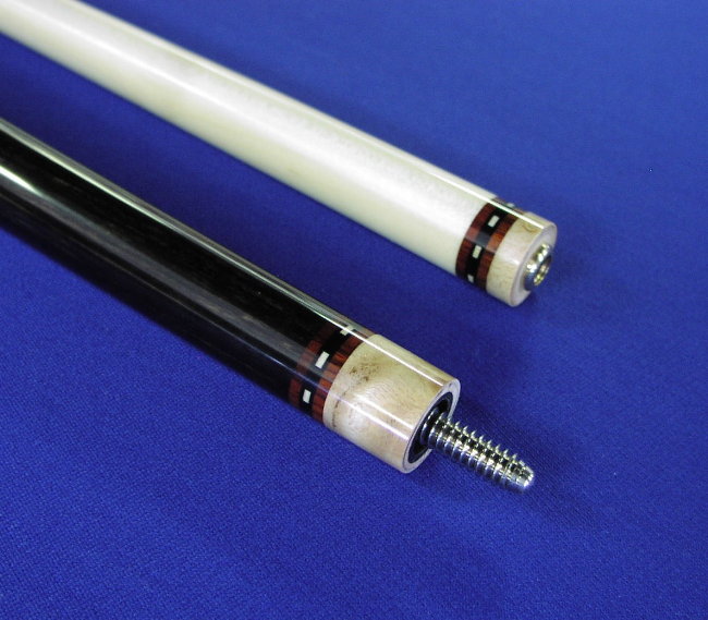 While I have had some influence in a few Rat originals, this cue was all Ryan's design. It flat out plays great. The pictures will never come close to reproducing the beauty of the ebony/maple combination. There are actually 4 of these cues total, and all are for sale.
