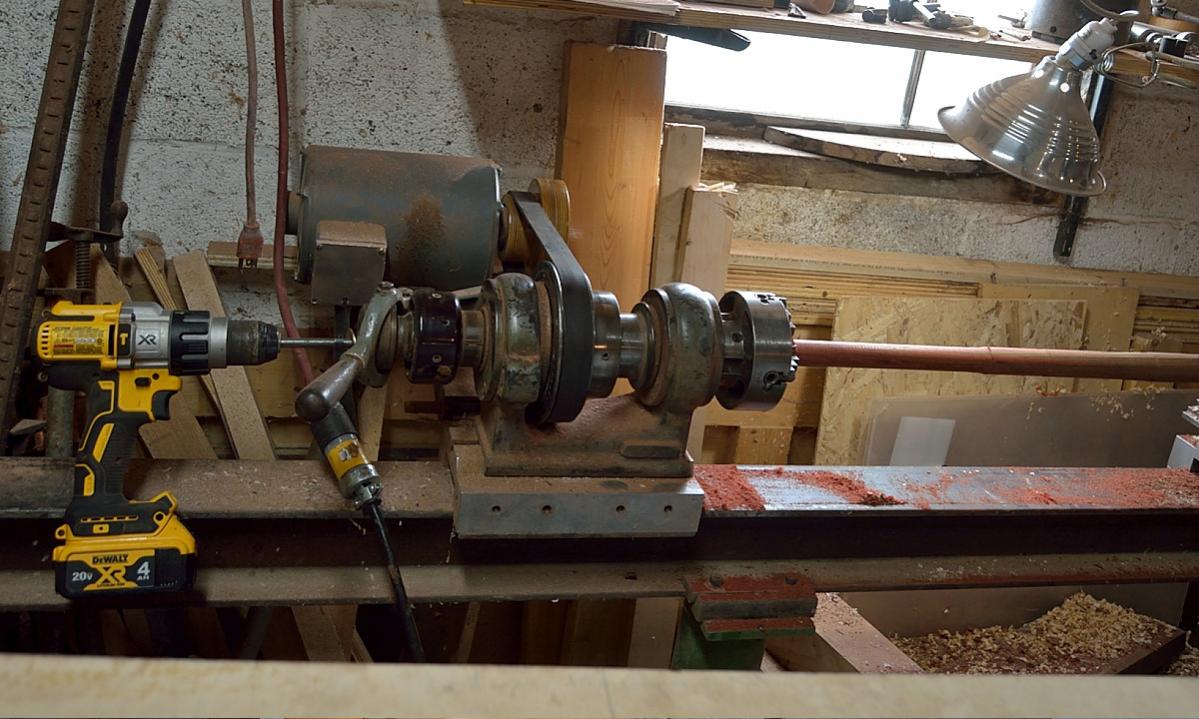 There is a bronze bushing in a collet in the headstock, behind the 4j chuck. When things are dialed in, i drill through it with a long 1/2 side center drill. The other end, i turn to a diameter, for indicating & drilling through the headstock, or grabbing with a collet. From here, it goes to the planer for profiling, though i still do not have a dedicated profile. More a set of tapers, and then blend them back on the lathe with abrasives. I do have a profile for shafts but have not made any recently.