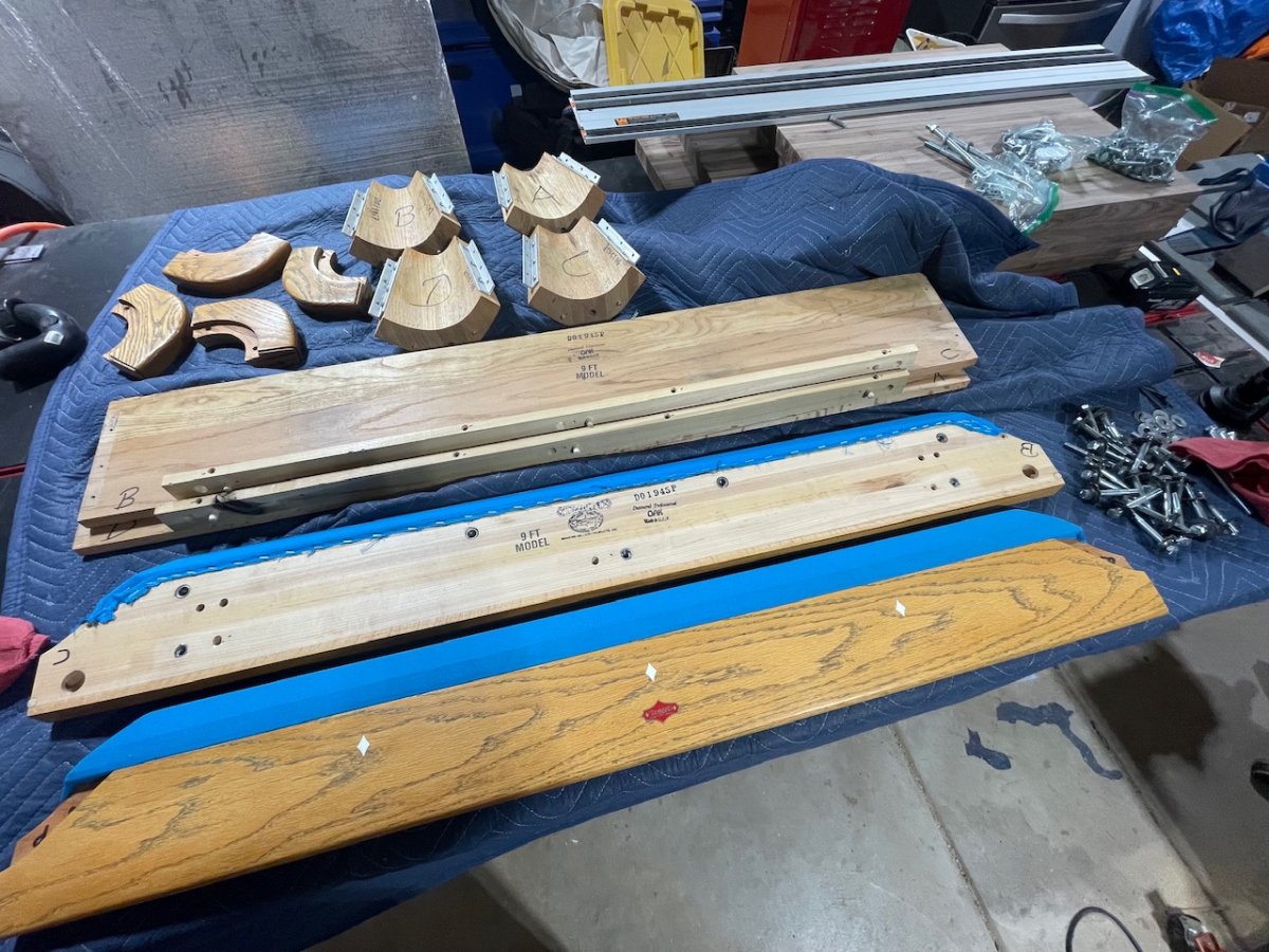 Nice! You've seen all of RKC's youtube videos, correct? He has all the techniques for simonis cloth and Diamond tables. (and other tables).Got the wood into the garage, slate is still on the trailer lol. Took inventory of the hardware and since we are waiting on a rug, I will get to work putting the new rail cloth on.
