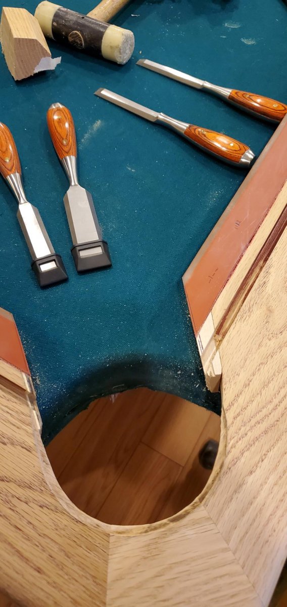 -In their intended application. These liners are mounted within a metal casting which merely provides a lip (shoulder) for the liner to sit on, and two locations to bolt them into place. Metal obviously being stronger than wood requires much less material to perform any task. This allows for zero material behind the liners. So when a ball is fired into the back of the pocket. The liner flexes to absorb that force as it redirects it into the bottom of the pocket. In my application, the liner may flex enough while being struck to allow it to contact the wooden corner caps. Yes, I can remove more material behind the pocket, but as I do everything gets weaker, and I'm concerned about the lip/shoulder becoming so unsupported that it may suffer unrecoverable damage.