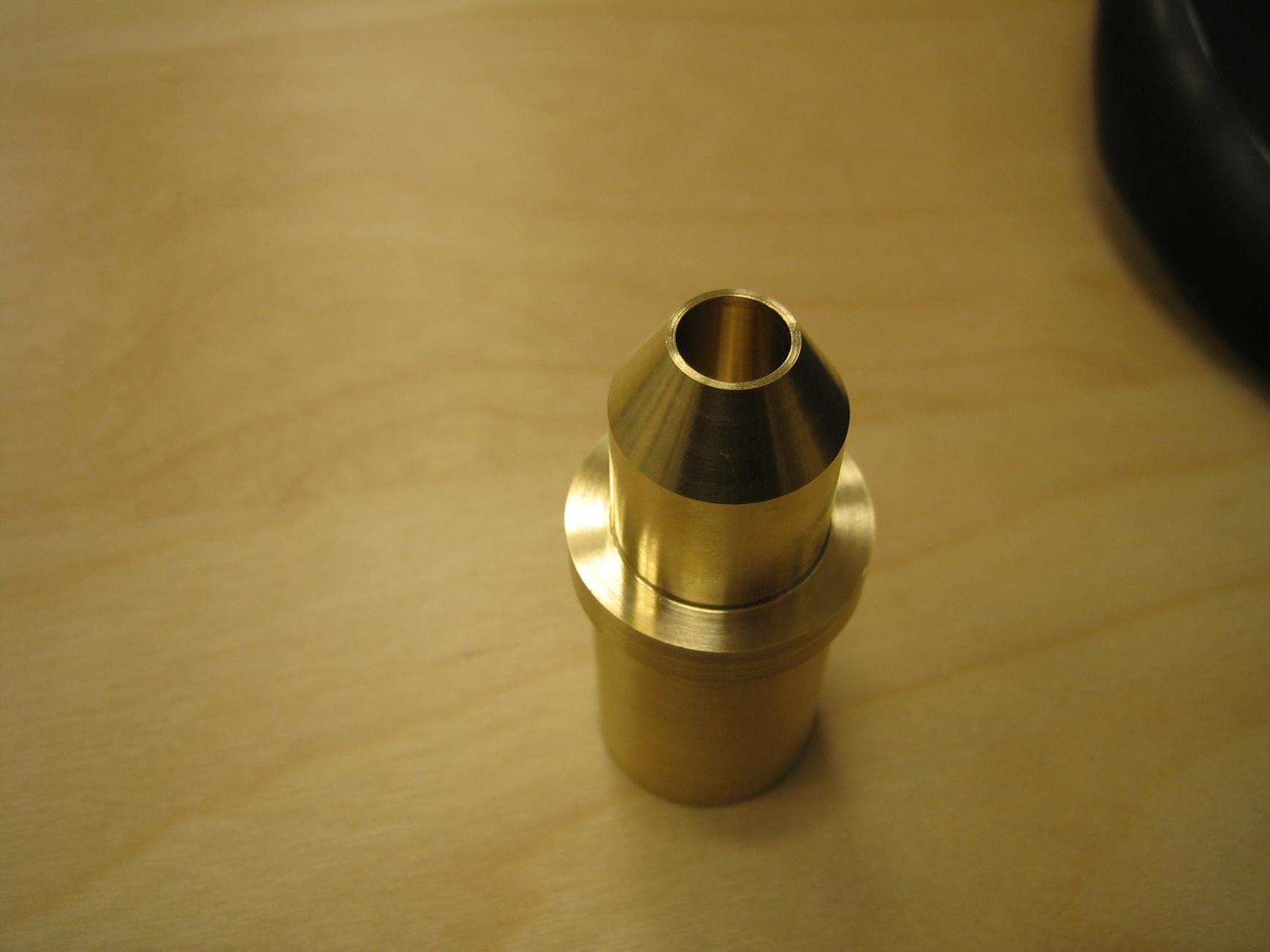 Anyway, this new center replicates the solid center dimensionally however I have bored a tapered hole in the center to allow the pin to run eccentrically without touching the inside of the center. A 5 degree included angle is what I have cut now- we'll see if this works as well as I hope- I may need more included angle...