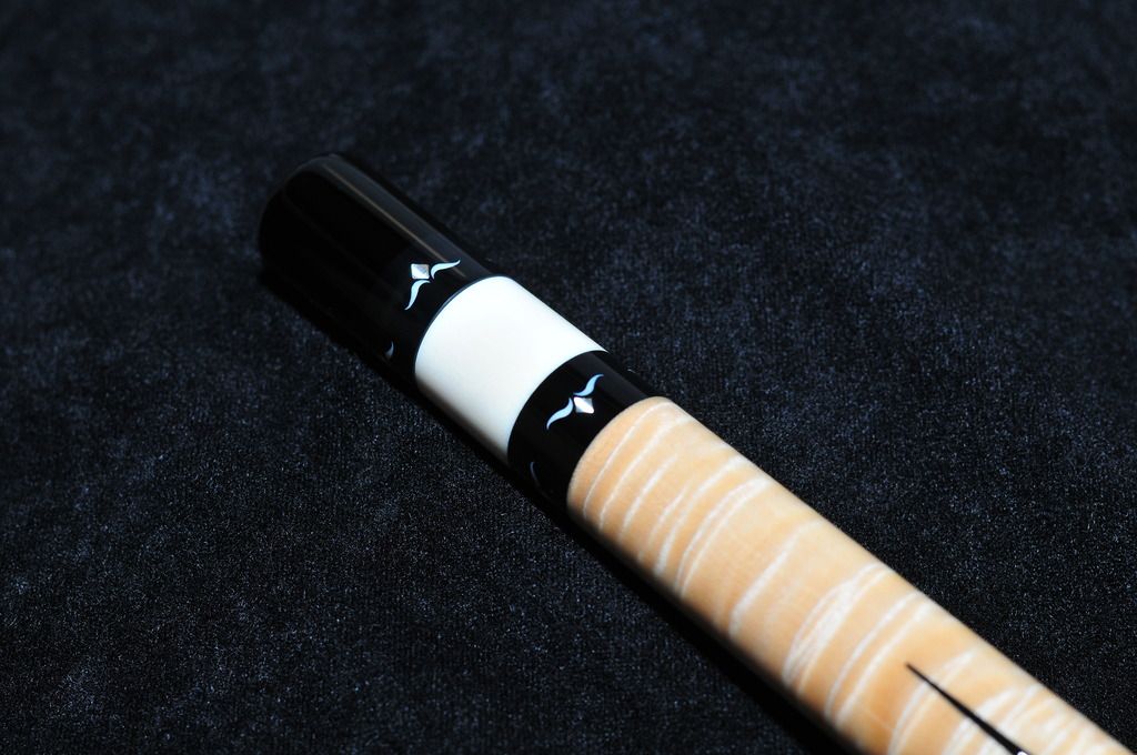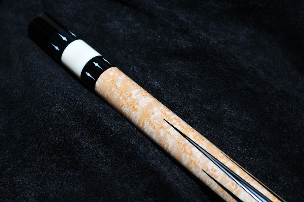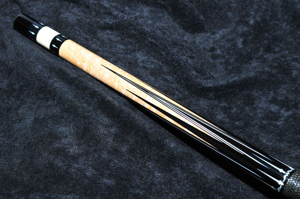 I spent some time with Marcus from Authur Cue. For those of you who haven't had the pleasure of getting to know the man behind the cues, he's a great guy. We shared a lot of laughs and I offered to shoot a few of his cues for him. He was sharing a booth with Keith Walton who in my opinion is one of the greatest gentlemen in the cue game. Unfortunately all the good company in the booth did absolutely nothing for the poor lighting at the show. There were several different temps of lighting and I was having no luck trying to reduce the glare enough to show any detail in the cues. Fortunately, John Barton had built an enclosed booth that all but eliminated the direct light from above and he was gracious enough to allow me to use his space to shoot a few shots.