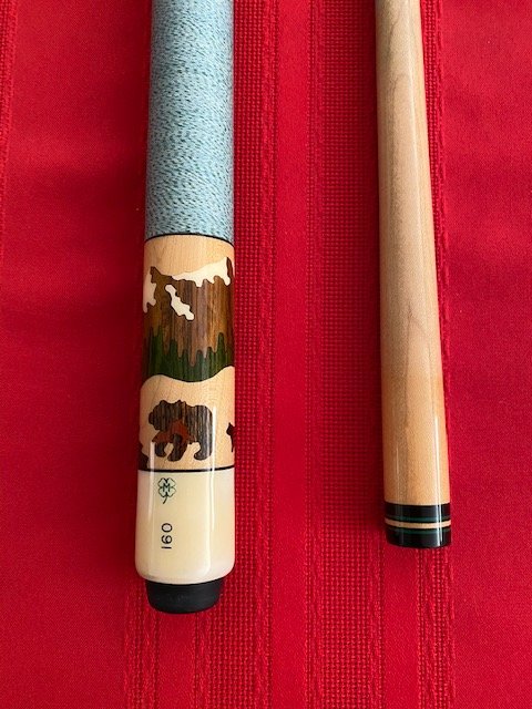 I’m selling a 1987 McDermott Wildlife Series Bear cue WC-1. This cue is in excellent restored condition and is numbered 160 of 500.