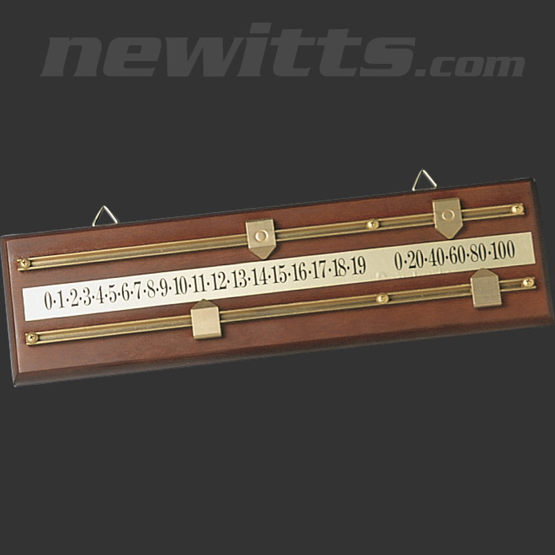 The score board is usually brass sliders, for 0-19 and eicosal to allow you to count above 100 per frame. I've attached a picture of a simple one. They can get a lot more elaborate than this. Either way, anything will do as long as you can count to 147.