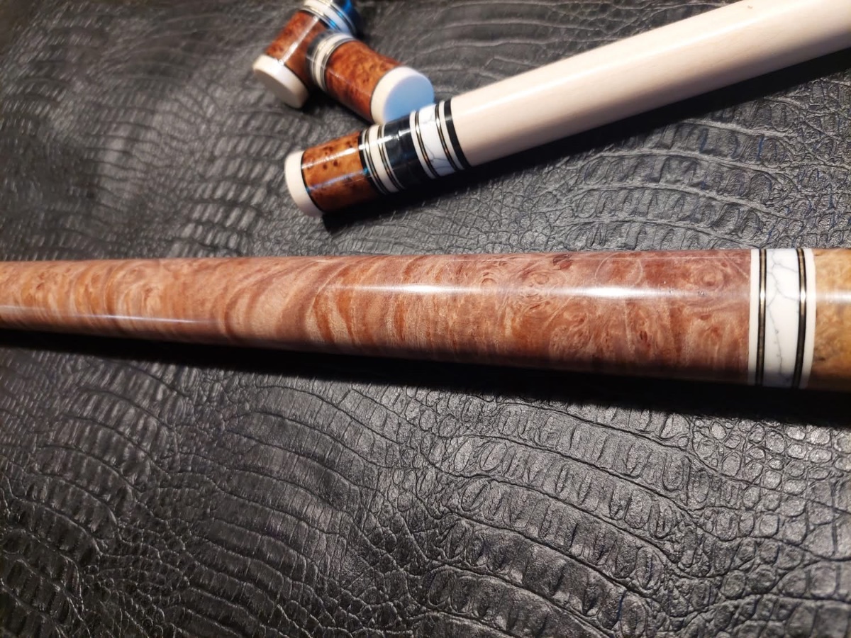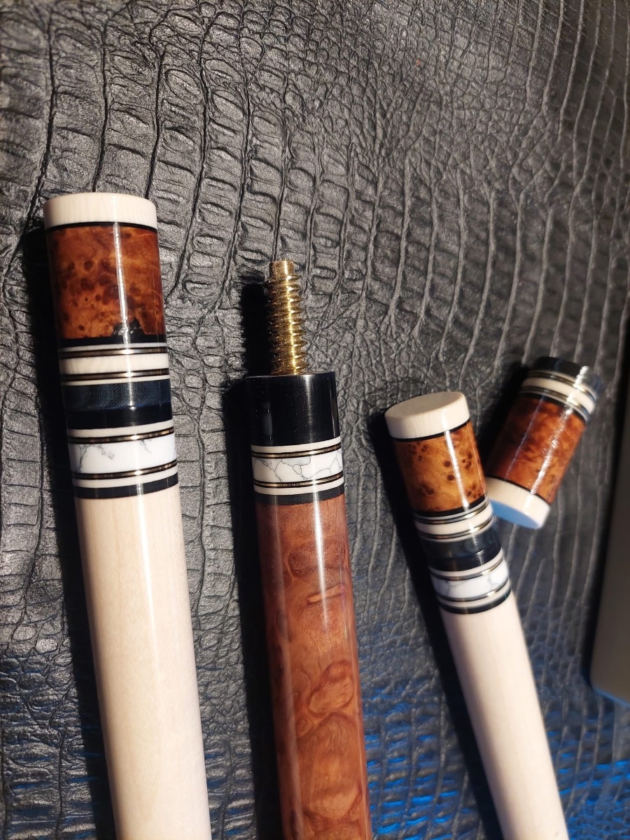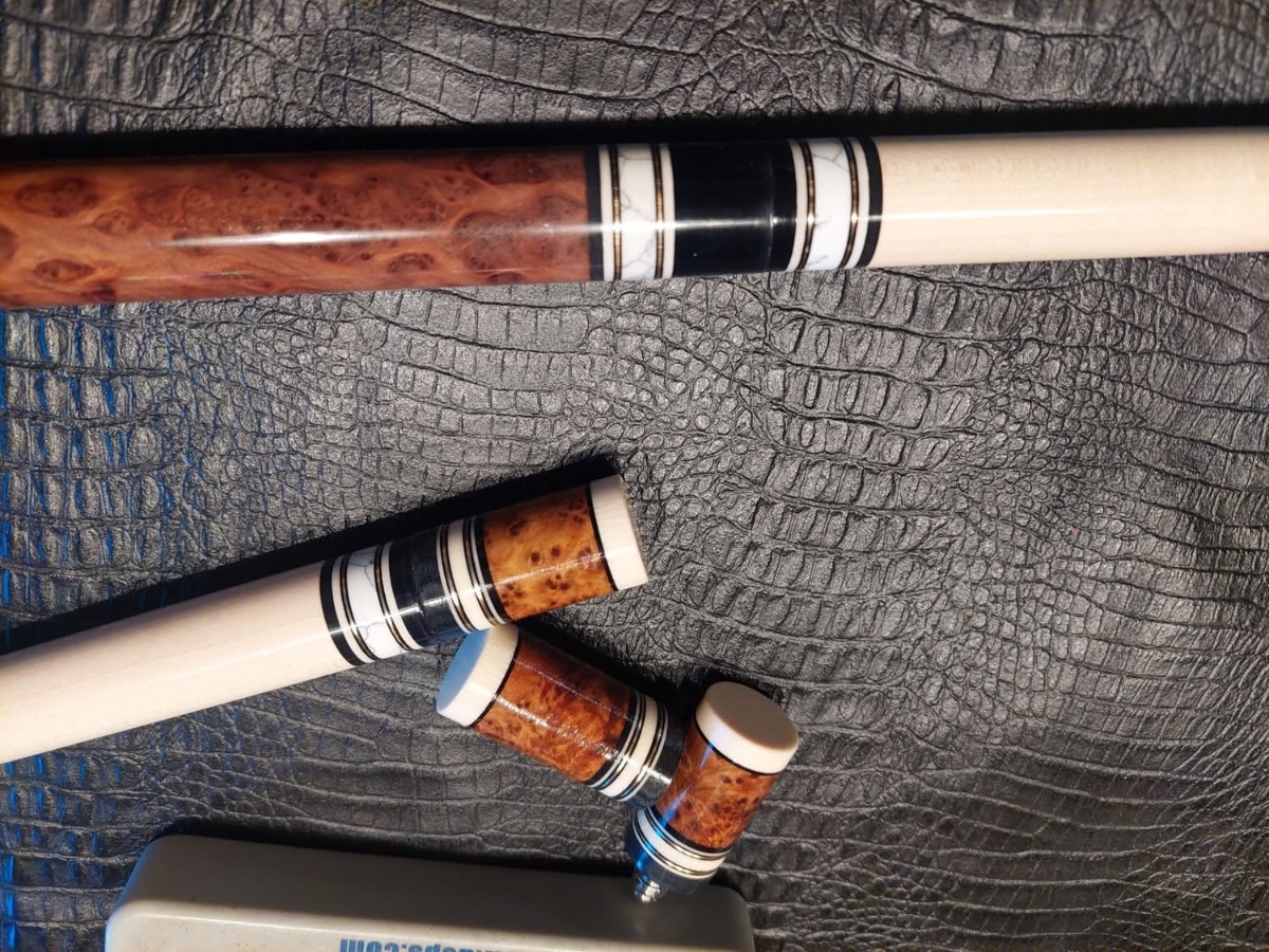 First time doing business with Jim Baxter and I must say it’s a pleasure to work with him. I first was only interested in joint protectors but as we chatted I became interested in his custom pool cues, one in particular. An Amboyna burl and maple burl custom cue he is finishing up. Consider it sold, I said, a wonderful addition to my collection. Complete with 2 shafts and joint protectors. Ty very much Jim, another 5 star rating