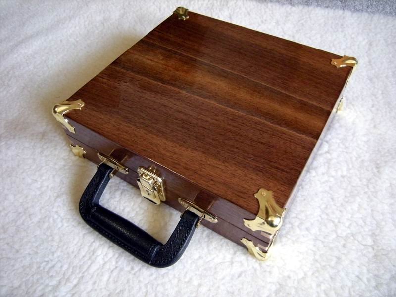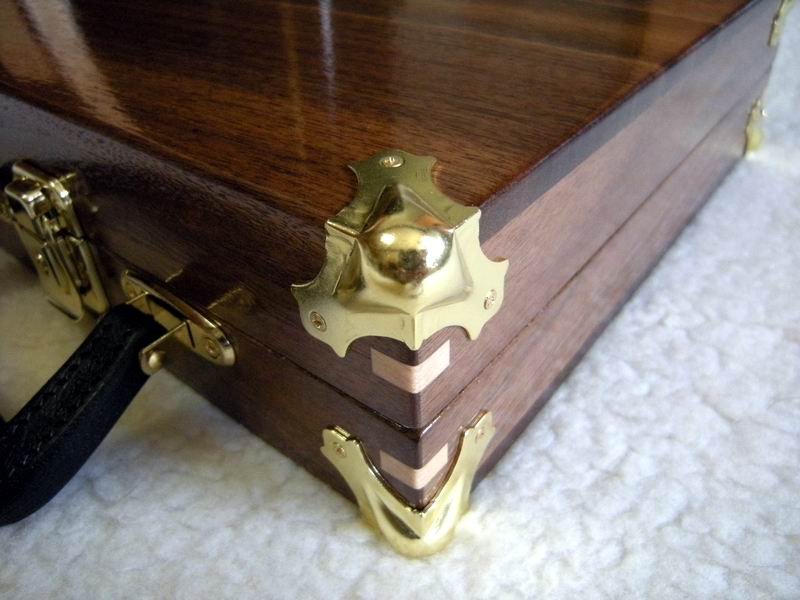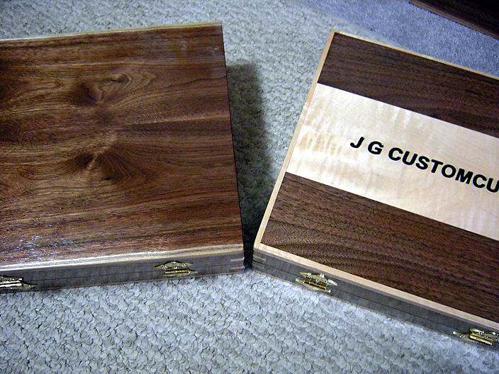 I can make you any size ball case you want 16-20 balls and custimized any way you want.All you have to do is contact me and we'll go from there. The way you see it in the following pictures either style (all walnut or curly maple and walnut)are selling for $85.00 shipped in the states.The lettering is extra.Each ball case comes with all the hardware including the corner protectors.Hardware can be either brass or nickle plated.The latch is lockable. The lining in the ball case will be black unless you ask for a different color.No charge for the change.The balls are set in a spot beneath each ball and the inside cover in padded to keep the balls from moving around.I dont keep an iventory because i do everything myself and simply dont have the extra time to do so.A ball case can be had in about 3 weeks.check out my web site.http://rhtcustomwood.com