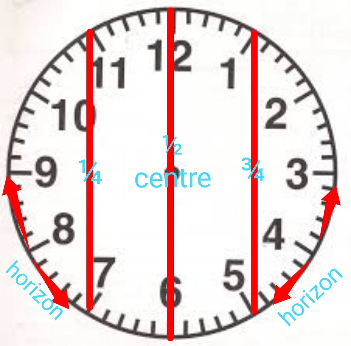 NOTE: horizon is splitting the difference between ¼ or ¾ to edge.