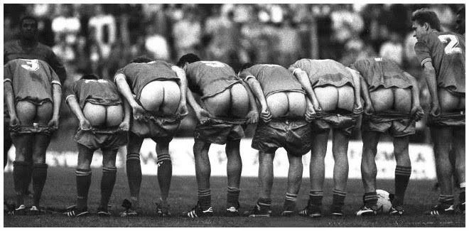 It is not as if they mooned the audience/camera like this whole football team (led by now actor Vinnie Jones). I can understand folks getting butt-hurt if they get mooned.