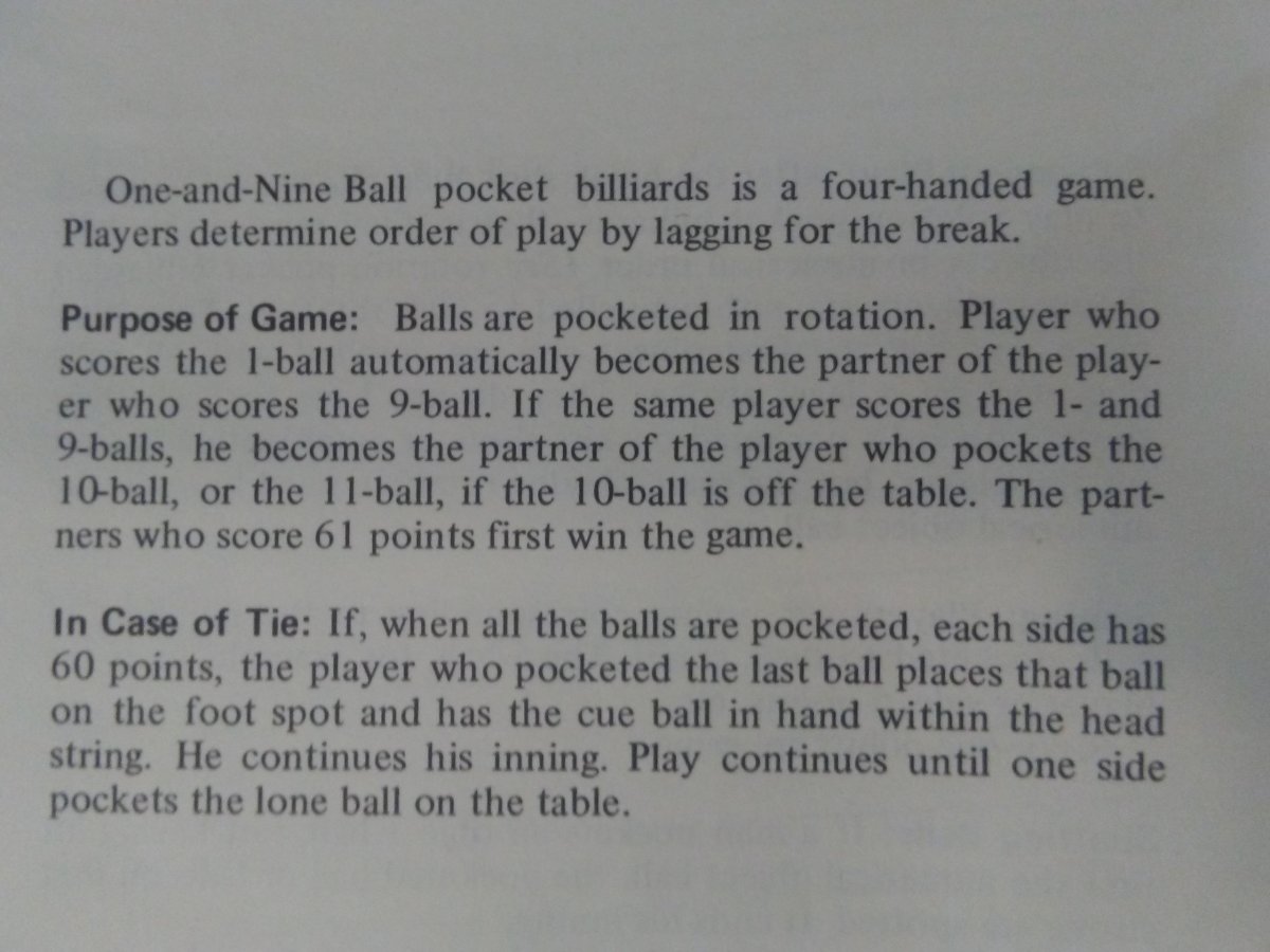 By the way, generally speaking, how many one pocket specialists or 14.1 specialists that you know of play rotation?