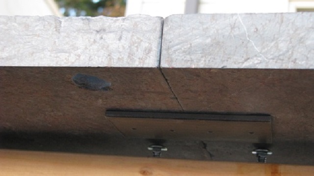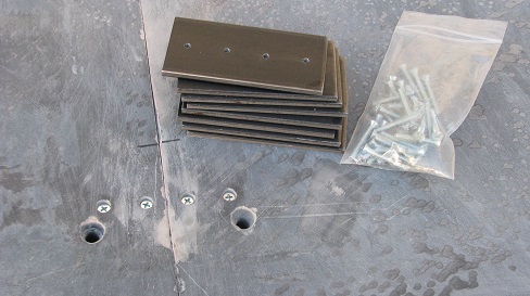 Steel plate joining slates together.