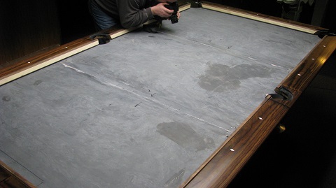 No, the seams from the factory should already be matched up and just have to place the slates on the frame of the table, slide them together, and screw them together, but if not, the seams can be shimmed flat while the slates are on the table.