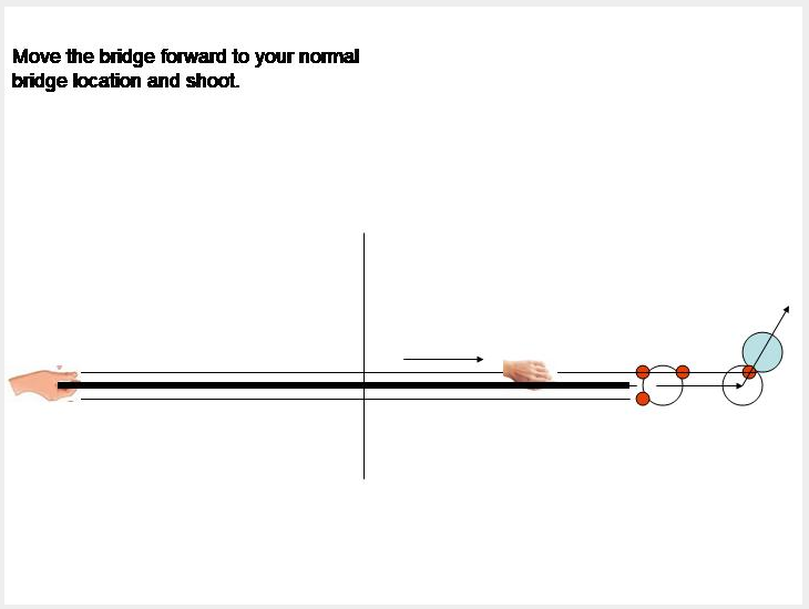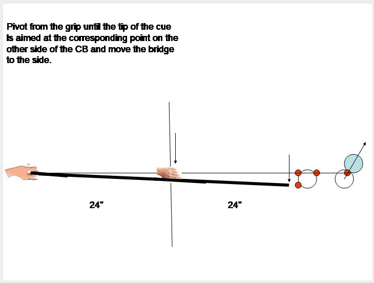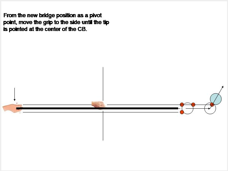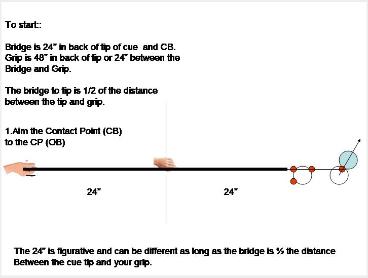 The rest of the pictures describe how to get the cue to the center of the CB, where you are to hit it, and parallel to the starting aim line.