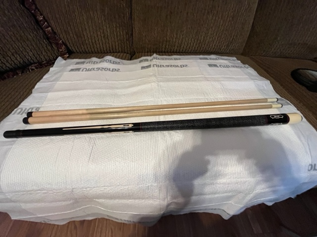 I sold several cues a few months ago. These did not sell then so here is a really good price reduction for these. I am in a wheelchair with no use for these but still will not give them away. Danny Stout about 19oz. rolls straight together and apart. 2 shafts 12.8 and 12.7. Players straight and apart 19 1/2 oz 1 shaft 13mm. Sneaky Pete 25 oz break cue. All cues very nice not scratched up or dings. $550.00 for all shipped.