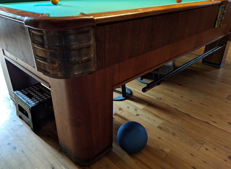 Sub-rail extensions are done, rails covered and table is back together. When setup by a mechanic before, the cushions were installed too high. Now that cushion noses are at the correct height, it plays much better overall. It still banks short compared to GCs of course, but it is better. I installed Superspeeds, but I don't know if in themselves they are necessarily that much better than the MBS K55s the mechanic installed; the problem with rebound angles / banking short (and that it's a T-Rail table) seemed to have been worsened by the high cushions. It's better now than it was. That needed to be fixed, so while I was at it...