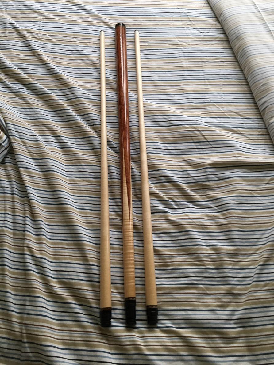 Brand new unchalked unplayed 2016 fancy sneaky. Andrew Rounceville blank not a conversion. Bubbinga into curly maple micro rings joint protectors. Cue arrived December 2016 and has been in a case since.