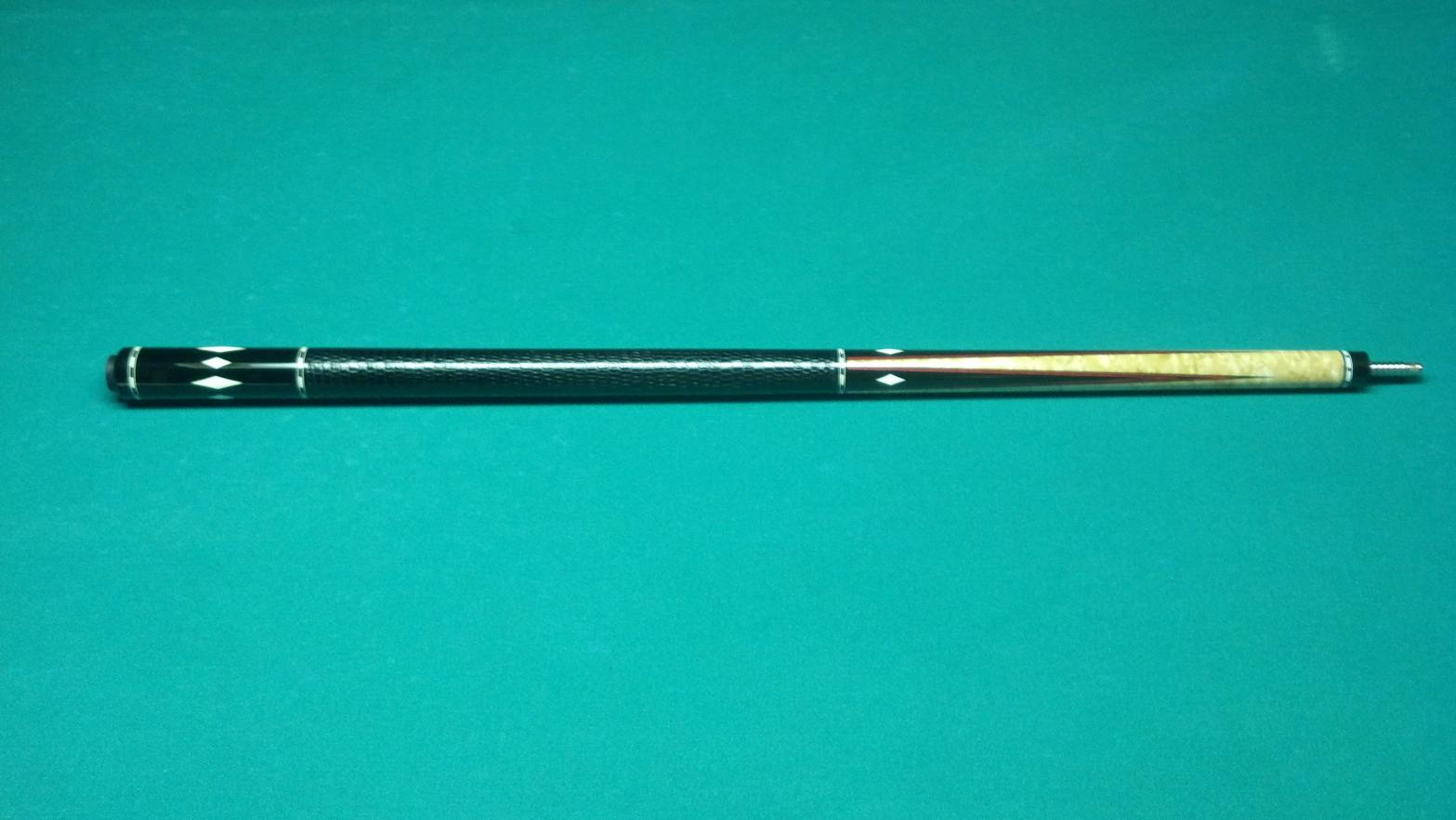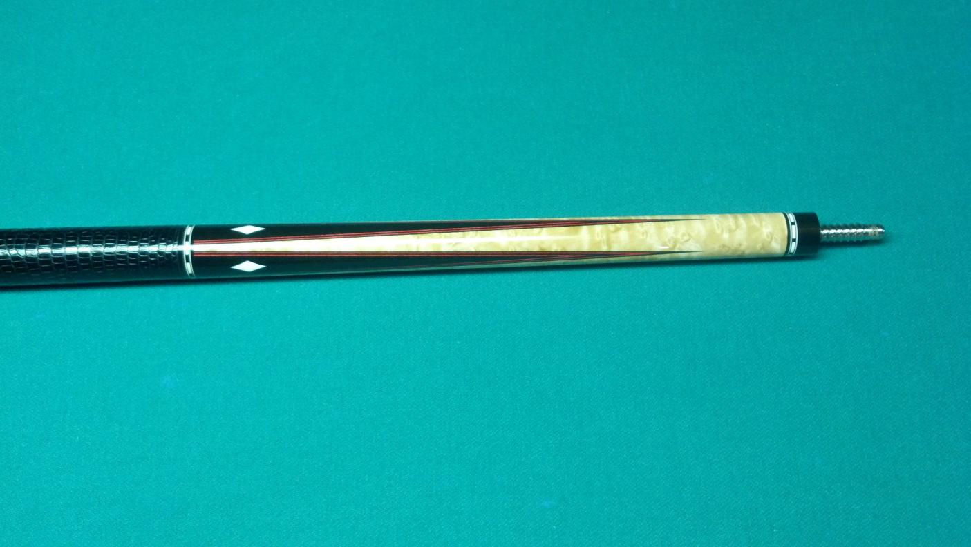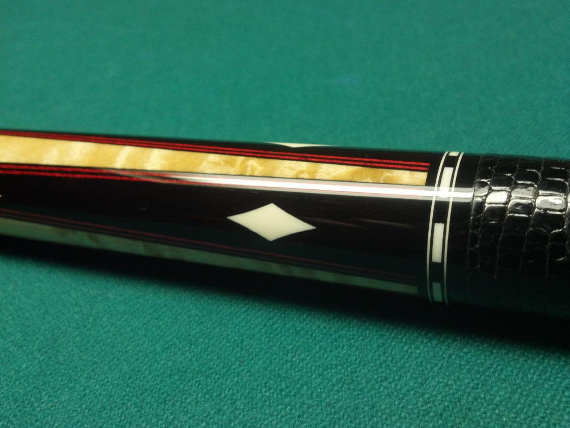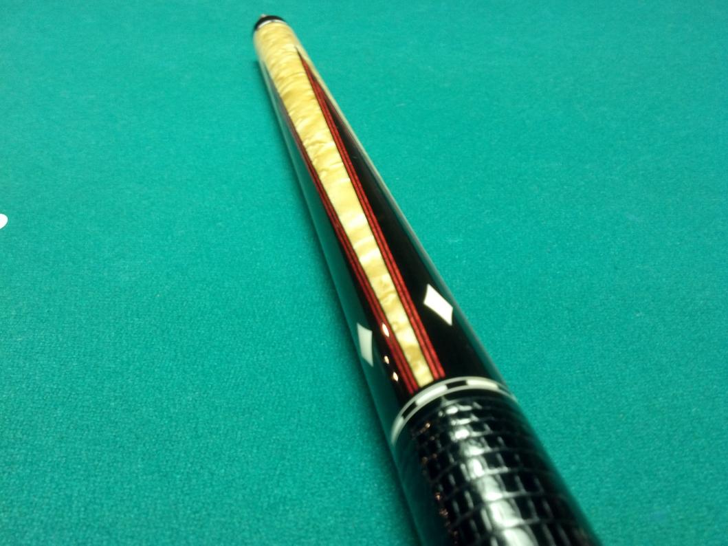The Capone has 2 shafts...and the pics dont do the colors justice. The red really pops next to the ebony. All white is ivory. Black lizard wrap. Cue is mint. Other specs available later (havent weighed or measured yet).
