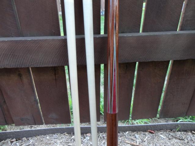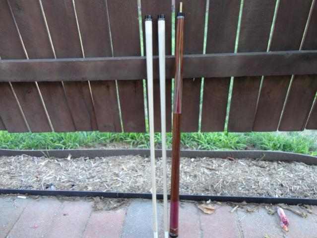 Looking to sell or trade wrapless james white cue not sure of the wood purple heart and something else. Awesome contrast in woods. Butt weighs 15.8 and shafts are 3.3 and both slightly over 12.75mm. Looking to downsize and only trades would be up to something traditional 4 ebony points with veneers or a big exotic case. Asking traded shipped. nateschade@gmail.com