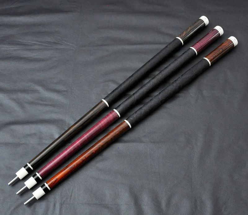 From top to bottom the woods are Zircote, Purple Heart, and Cocobolo
