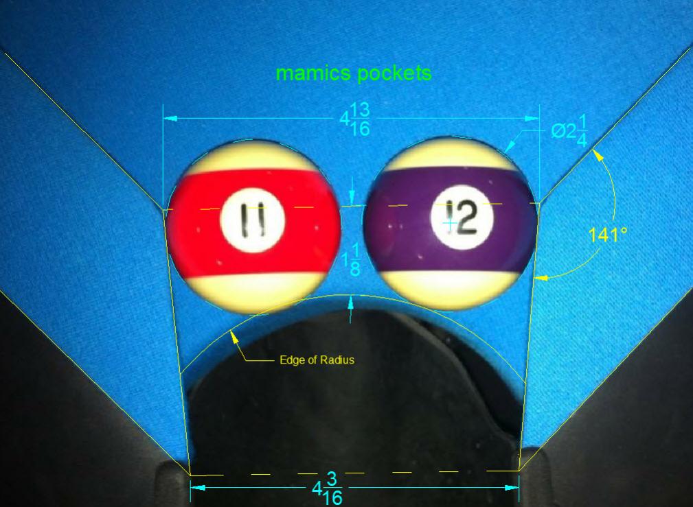 Edit: I see now from an earlier post that the cushions are wider on cigardave's table which would make the shelf deeper. But how does he get a mouth-throat difference of 1"? The pocket facings look parallel or very close to parallel in the photo. That's definitely not a 3 1/2" throat.
