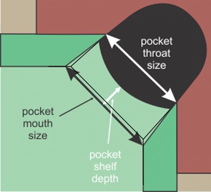 I have come to feel that Diamond did a real good job with coming up with the ideal pockets dimensions and angles. They made them a little tougher for straight in shots, a little easier for rail shots, a little more forgiving of hard hit balls, and a general consistency and predictability between all shots. In pool, consistency + predictability = easier in my book.
