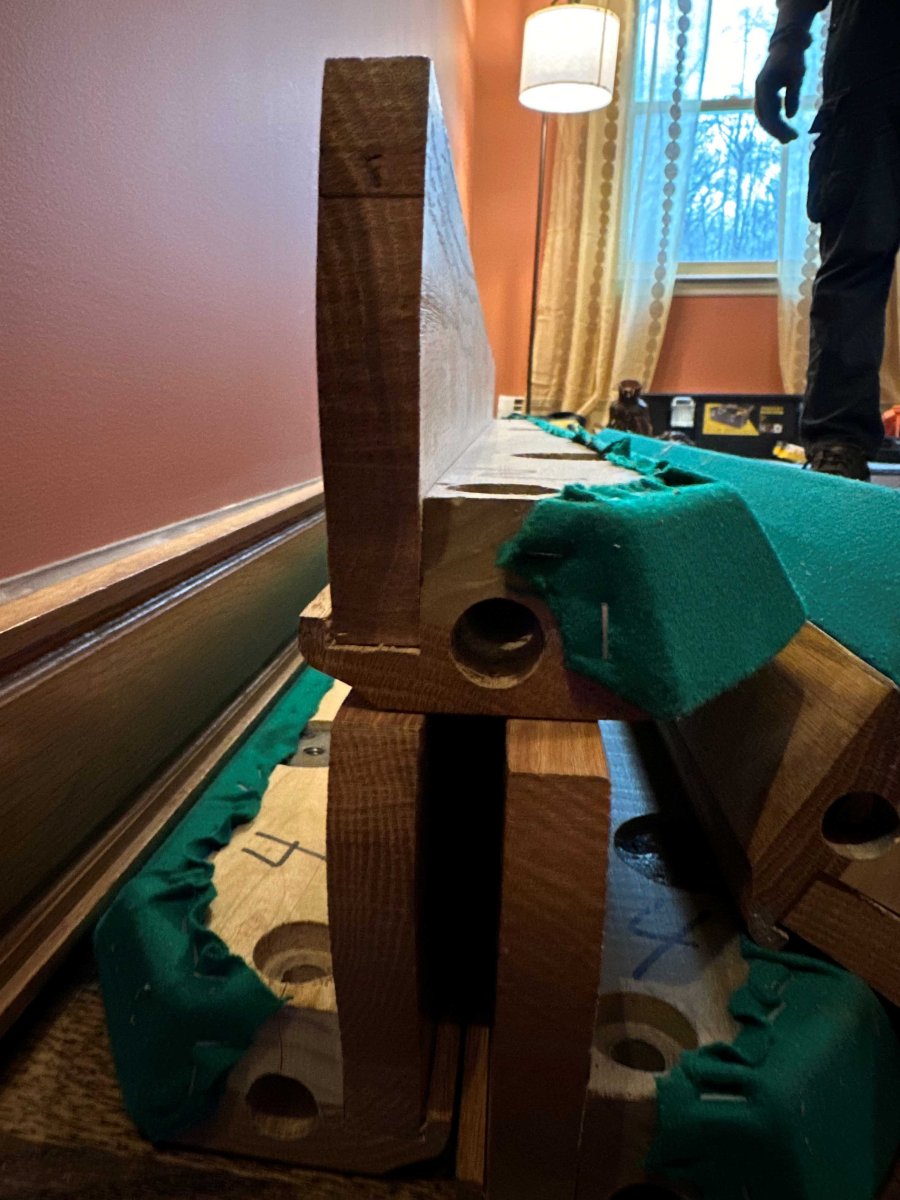 I am trying to ID a pool table that came with my house. There do not appear to be any marking on it except from whoever set it up last. Handwritten in cursive, is what I believe says "Meridian". I looked online, and there is a moving company with that name, but I called them and they did not have any info.