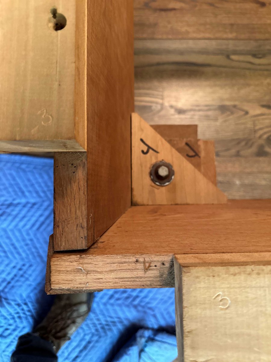 I only have pictures from when I had to disassemble it to move it, and they are as follows: