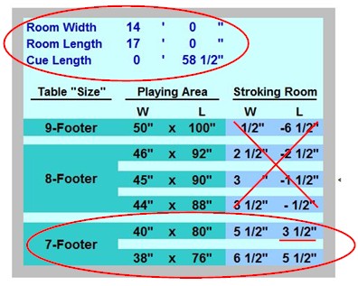 7 ft table needs 20 ft x 16.5 for unobstructed play. More for Shane, Shaw who use longer cues.