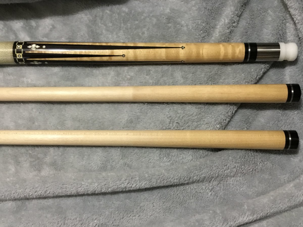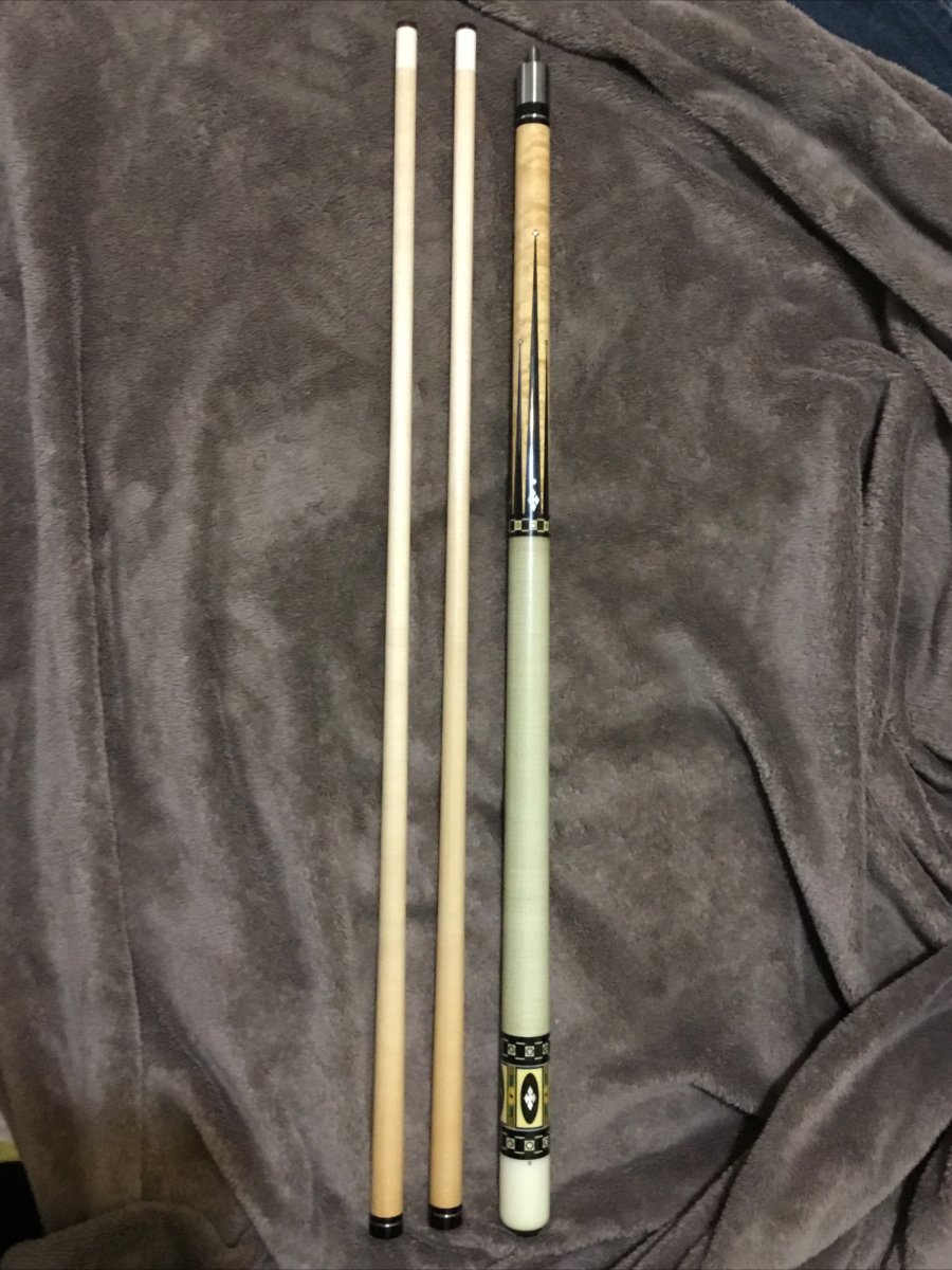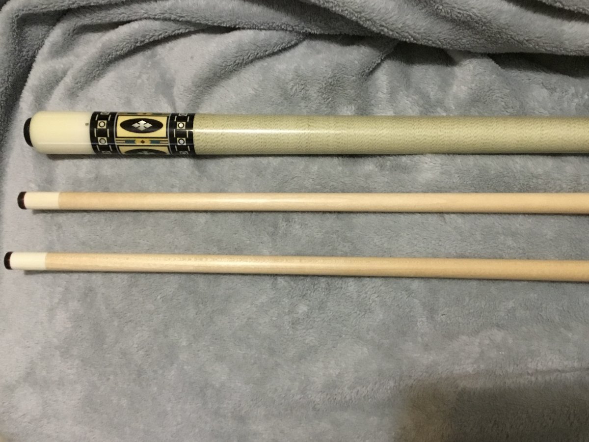 The cue is 58 inches long, the butt weighs 14.7 ounces and both shafts are 13 mm.