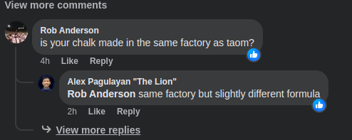 Or, ya know, he just says that in order to sell more of his own Taom chalk. Maybe his different formula was the shape of the mold.Ok, my opinion changes. It's 99.5% V10 with just enough changed to call it different. It quacks like a duck.![]()