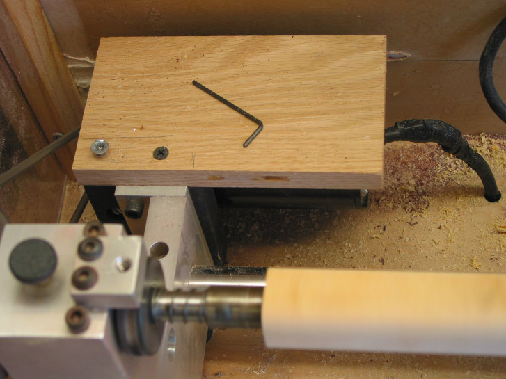 One thing that I do need to improve is the drive center I use. I need a longer one. The enclosure comes REAL close to the chuck at the end of the cut. I have a positive stop bolted on to prevent a collision, but I'd like to have a little more clearance just for comfort.