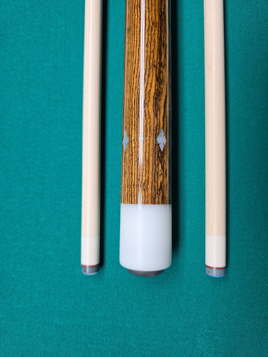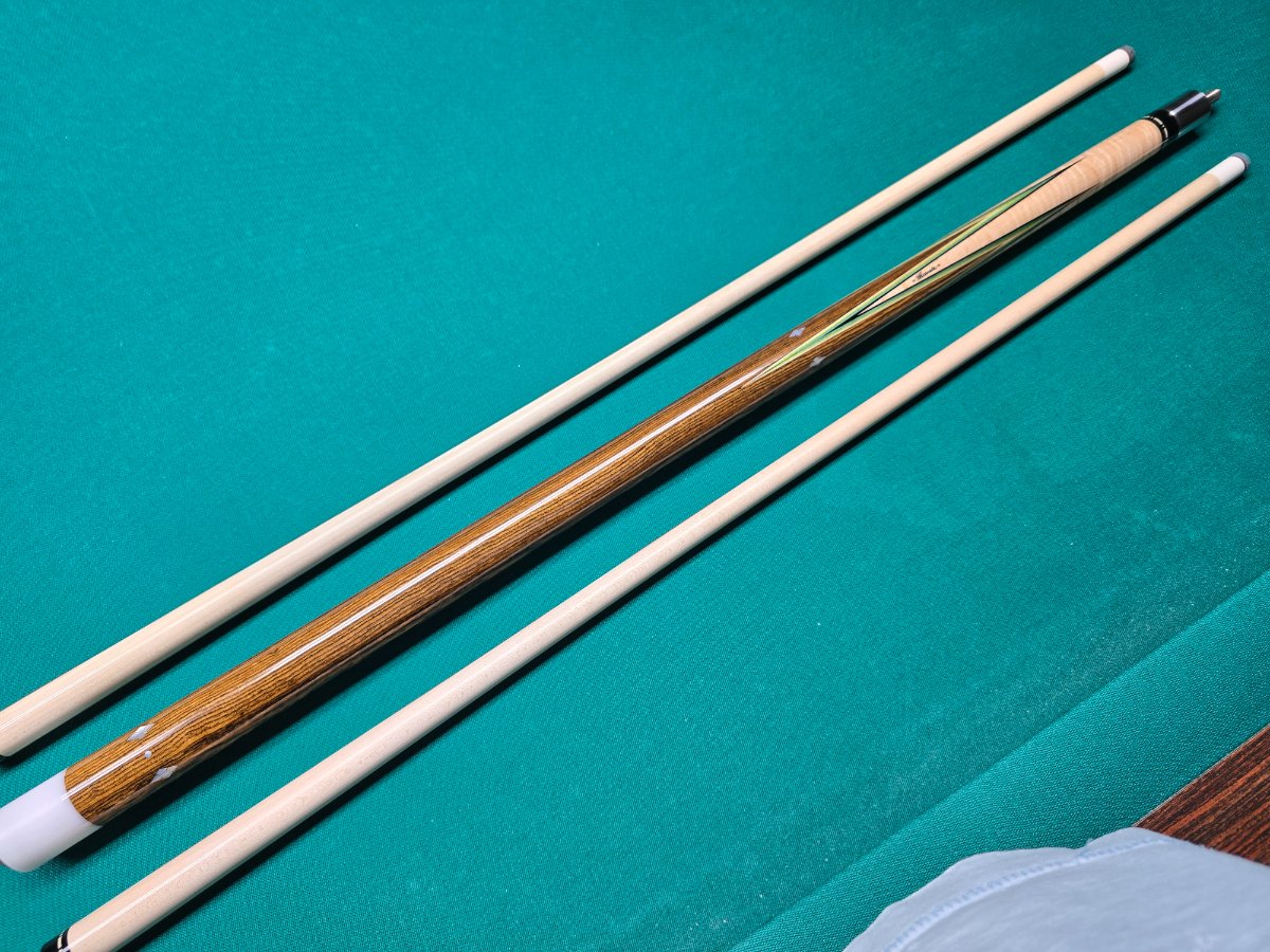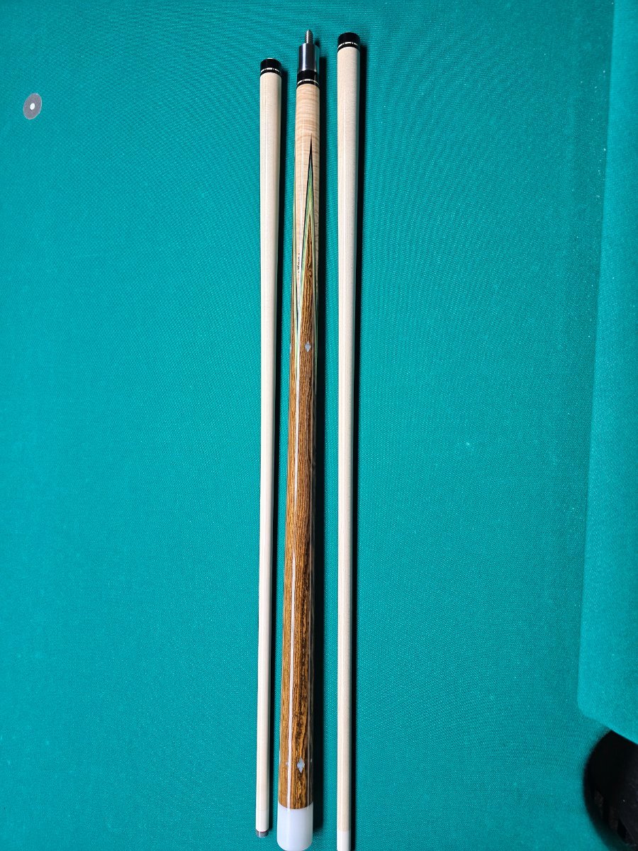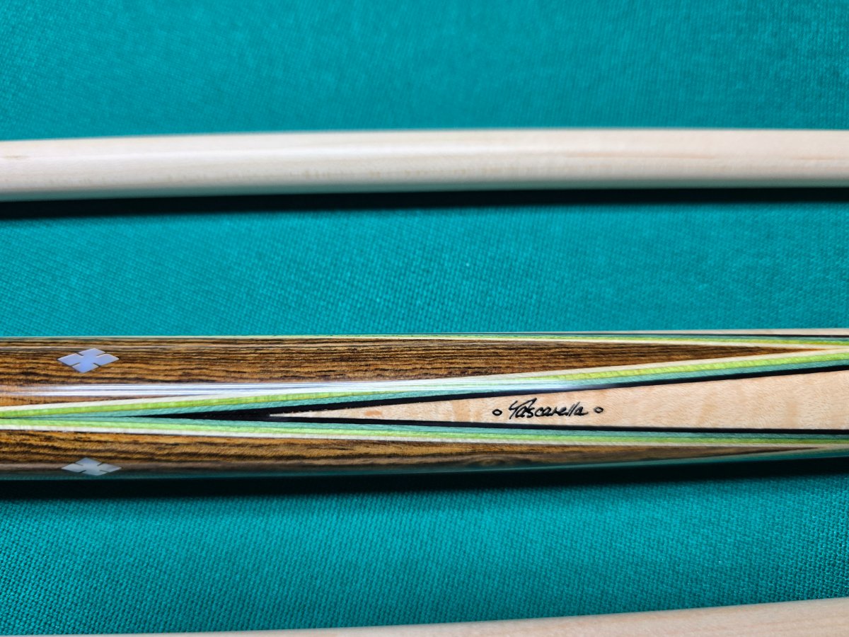 Full splice Tascarella custom 4 point cue. The cue is 58” split evenly, 29” & 29”. The points are