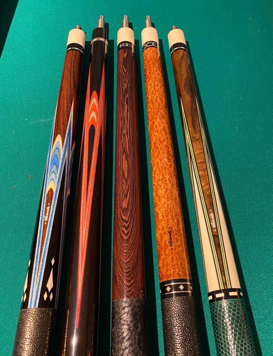 I am a hard core cue user and am never fully comfortable playing with fancier cues. If I ever get to a point where I want to own several cues I would probably try to design something traditionally fancy by Tascarella. It might also be cool to have a collection of several Tascarella Merry Widow cues in different woods (Brazilian Rosewood, BEM, Ebony, Curly Maple, Burl,.....).