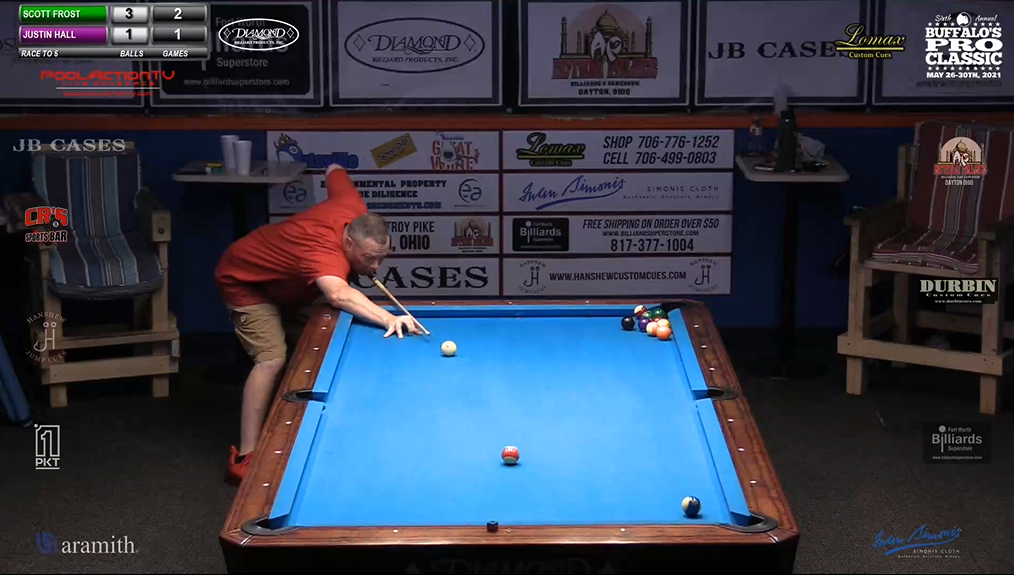 The bracket shows Scott Frost 5 Justin Hall 4. Frost on to the final against Chohan. True double elimination.Terry what's going on in the One-Pocket, do you know? It hasn't been updated in over 2 hours.