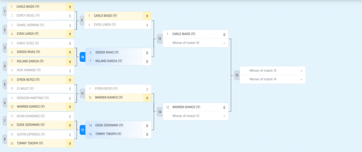 See all the matches and scores on this bracketAnybody got any results for the 9-ball games?