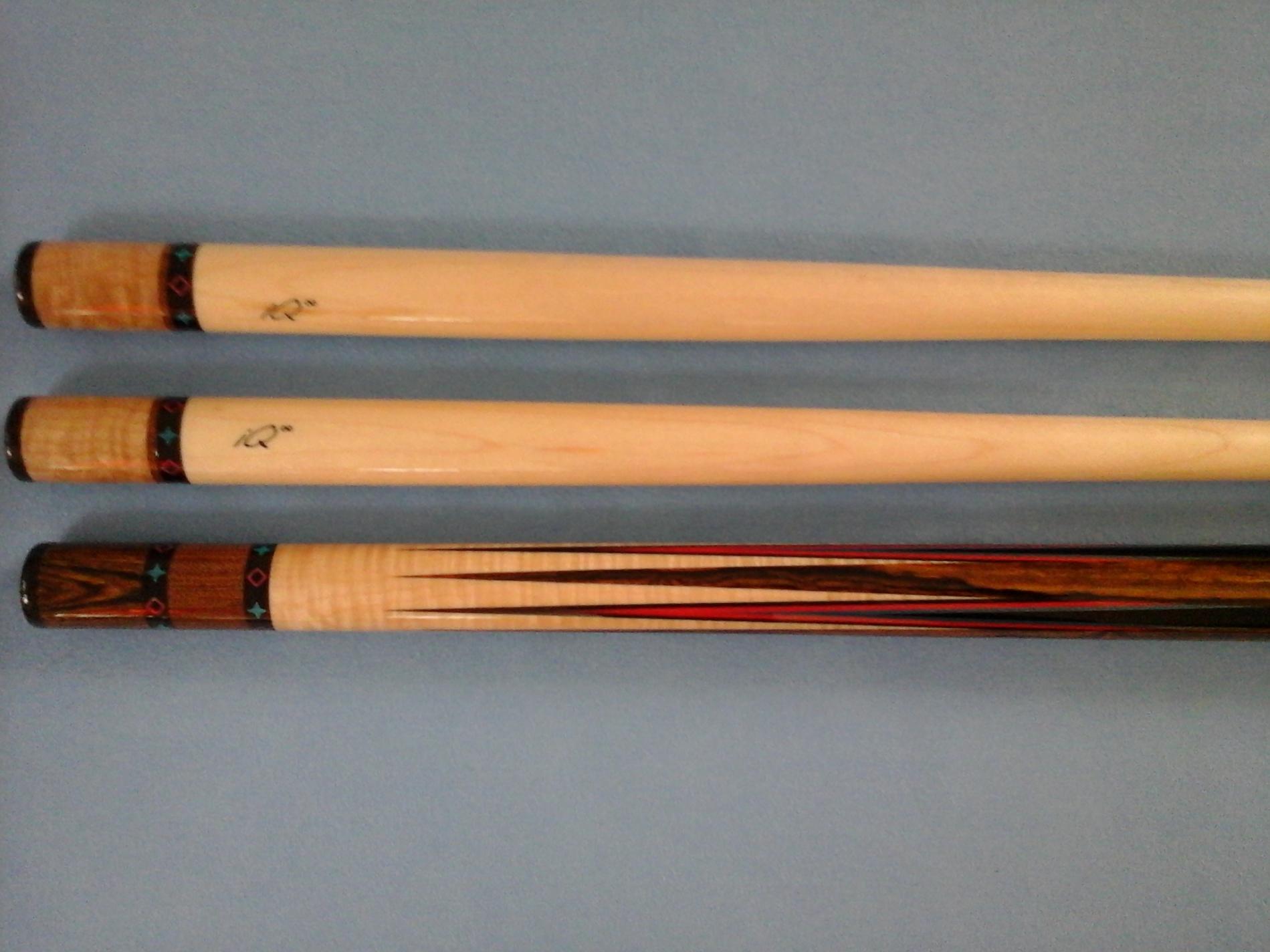 Shafts of the original cue have Brunswick blue diamond fiber tips from the 1960's.