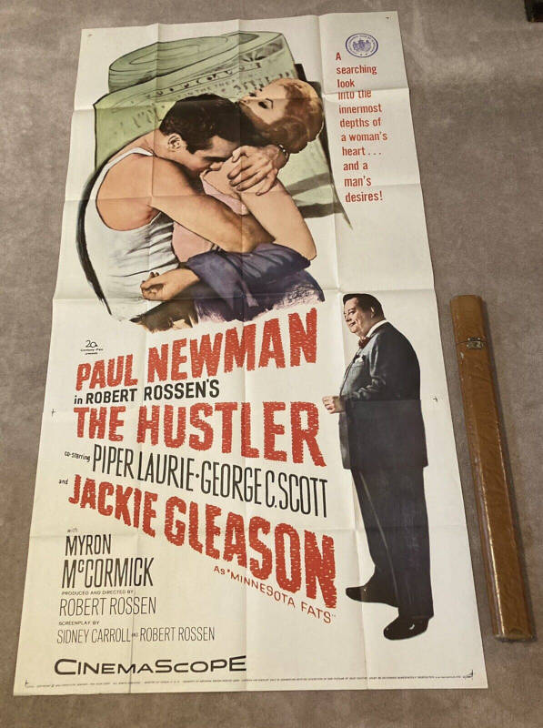 The Hustler (1961) Movie Poster, Original 3-Sheet. Never Used, Folded, Graded 8 of 10