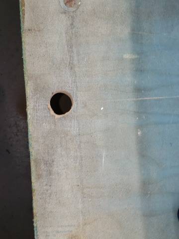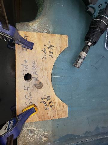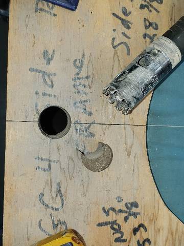 What you do is clamp a piece of 3/4' plywood with a hole in it drilled 1 1/4" on a center line with a 7/8" hole saw. Then use that hole to guide your 7/8" Diamond tipped hole saw from walking around while its trying to drill the slate out, and as a guide to align the hole saw straight up and down. Most all bolt holes through slates today use a 7/8" bolt hole opening. So what you're actually doing is overlaying a new rail bolt hole around the 5/8" factory drilled bolt hole, only you're actually drilling it on center to match the rail bolts going into the rails.View attachment 627434View attachment 627435View attachment 627436