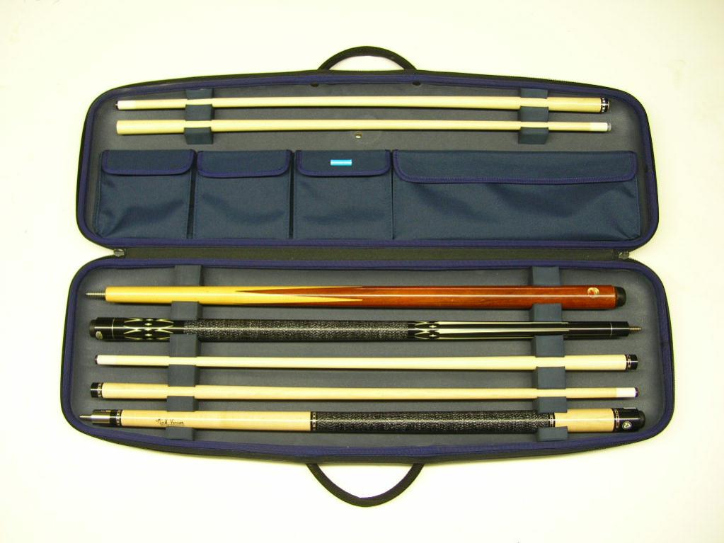 Players can put up to 5 cues and shafts on top of the others with a nice sleeve to protect from contact. The cue holders inside are made of heavy duty rubber with a radius so the shafts or cues CAN'T COME LOOSE while being handled by the airline personnel.